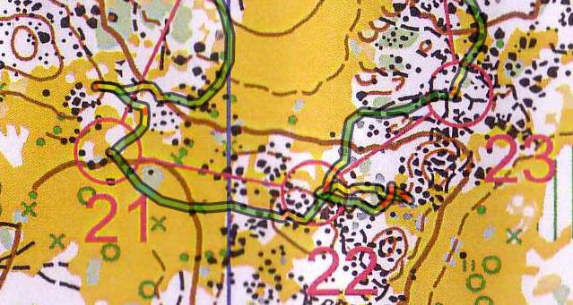 C’est partie la première partie se passe bien j’assure les premiers postes. Puis j’arrive dans la partie sable qui me semble facile mais je pars trop vite sur le 21 et je chercher un peu. Puis la 22 je passe a coté sans la voir !