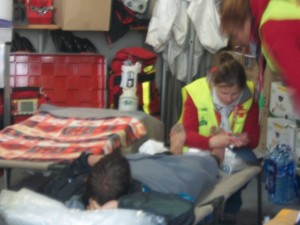 Arrivée aux houches, je me fais soigner les pieds (2 petites ampoules) car 3h d’avance sur les barrières !
