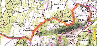 Nous voilà donc de nouveau sur nos montures pour une VTT’O où franchement, je vais, au départ parvenir à me repérer et suivre l’itinéraire….