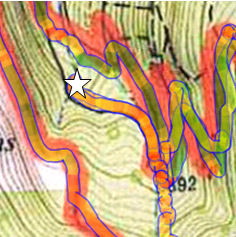 Retour au ravitaillement en trail et départ pour une CO au score…spéciale galère ! On commence par une erreur d’orientation…le jardinage commence ! On finit par se recaler et partons enfin à la chasse à la balise n°1 dans une grande descente, sur un single bien boueux et bien épineux…jusqu’à ce que Juju décide que franchement, courir avec 2 chaussures est vraiment superflu alors il en laisse une dans la boue et continue ainsi quelques foulées ! !! Bien entendu, je m’arrête et Juju attend désespérément que je lui ramasse sa chaussure mais je ris tellement que cette mission pourtant banale va devenir difficile et mon fou rire ne va pas s’arrêter lorsqu’il va essayer de renfiler sa chaussure et que la boue emmagasinée dedans va faire obstruction !!! On finit tout de même par repartir pour se faire déchiqueter par les ronces de ce chemin, enfin trouver cette balise et réaliser que nous avons mis 40 min à la trouver, que nous sommes tout en bas du vallon, que la 2ème se trouve à l’opposé, tout en haut…et que nous n’aurons pas le temps d’aller la chercher !!!!