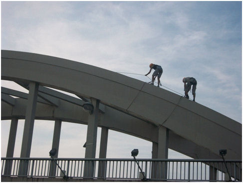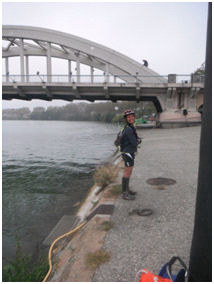 Du coup, nous réalisons la dernière section VTT, retour au bercail, avec un grand sourire…surtout qu’à l’arrivée nous attend l’atelier cordes : grimper en mode via ferrata sur 2 arches du pont de Neuville…pure détente !