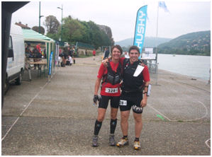 Quelques hésitations de circuit mais bon, on finit tout de même par arriver au parc à vélo sous les encouragements de la tribu Juju…ça fait vraiment plaisir ! On enfourche nos montures et nous voilà repartis…pour une portion que je qualifierai de VTT/trail tellement on va pousser notre vélo dans ces abruptes côtes caillouteuses ! L’organisation nous annonçait un dénivelé positif de 1200m en VTT…confirmé !!!