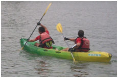 De retour avec mon carton poinçonné, nous montons dans le canoë sur la Saône. On parvient assez rapidement à trouver notre rythme, même si Juju prend une douche et notre trajectoire, différente des autres puisque Juju choisit le centre du fleuve. ..trajectoire qui va payer sur la fin où nous doublons pas mal d’équipages (on finit quand même 3ème sur cette épreuve alors Juju, ça méritait bien une ptite douche !)