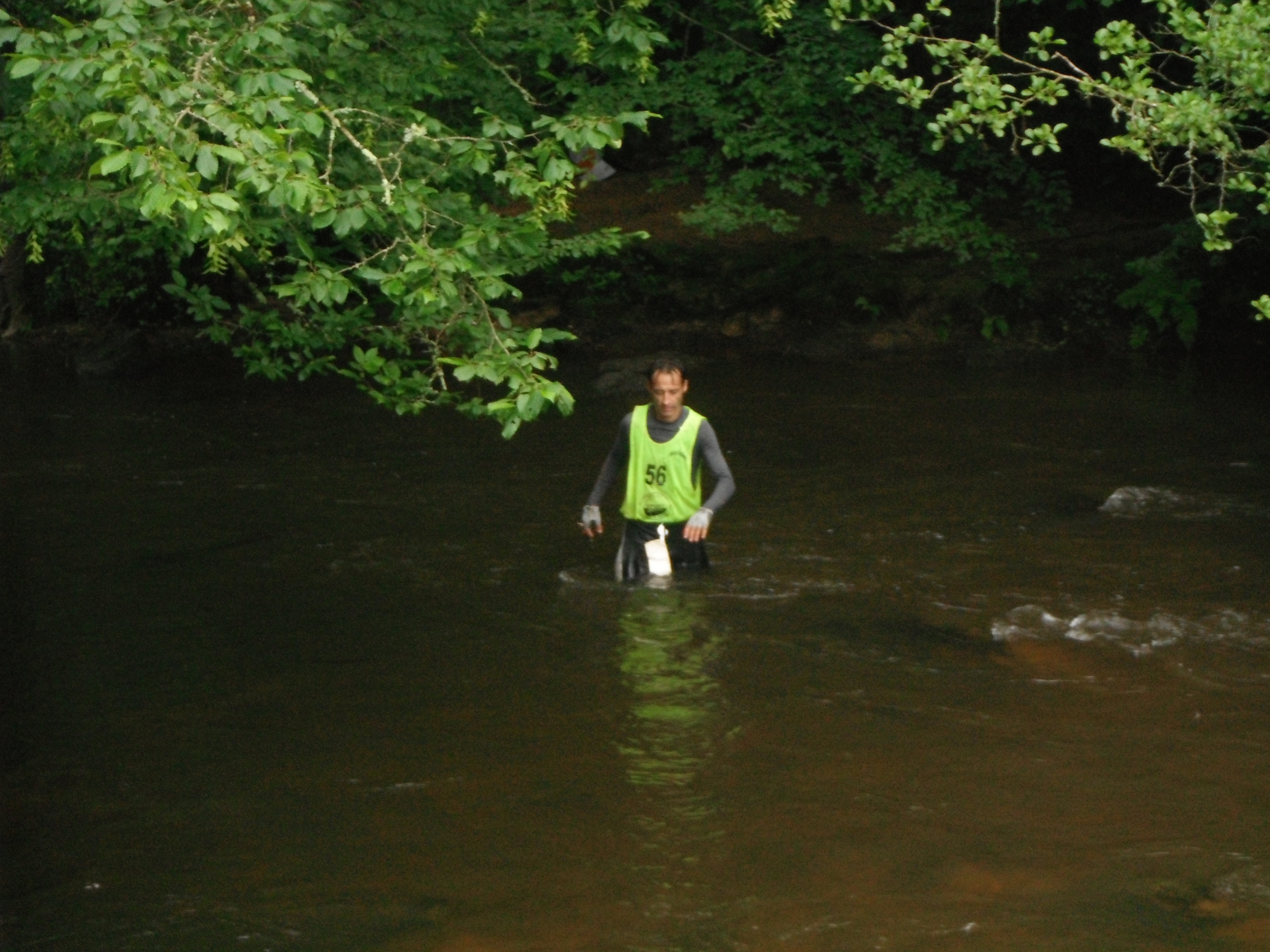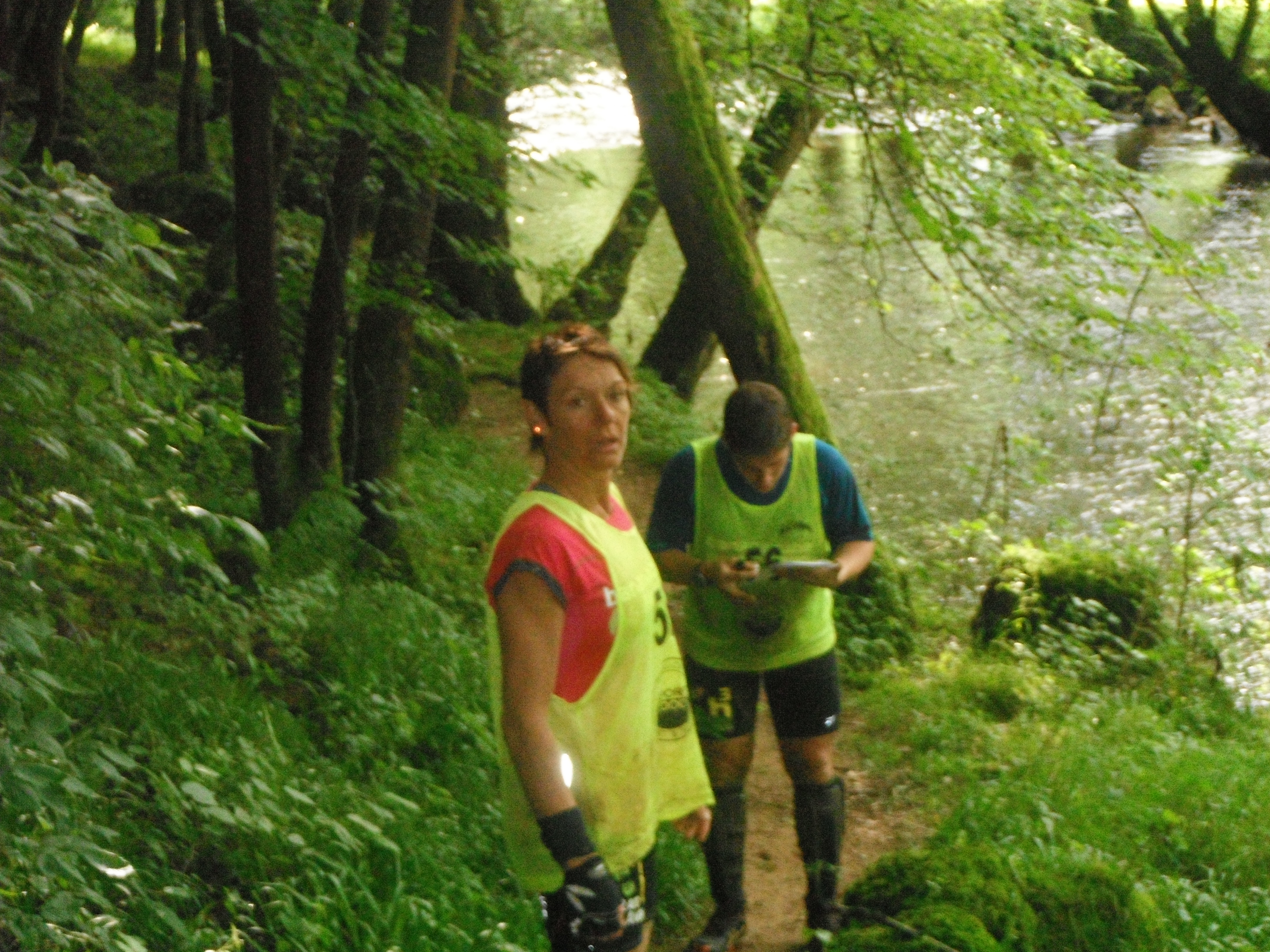 On retrouve tout de suite l'esprit des organisateurs qui nous font d'entrée prendre un bain de jambes en nous faisant traverser la rivière!… en fait c'est une mauvaise appréciation de la position de la balise qui nous fait finir dans l'eau 😉