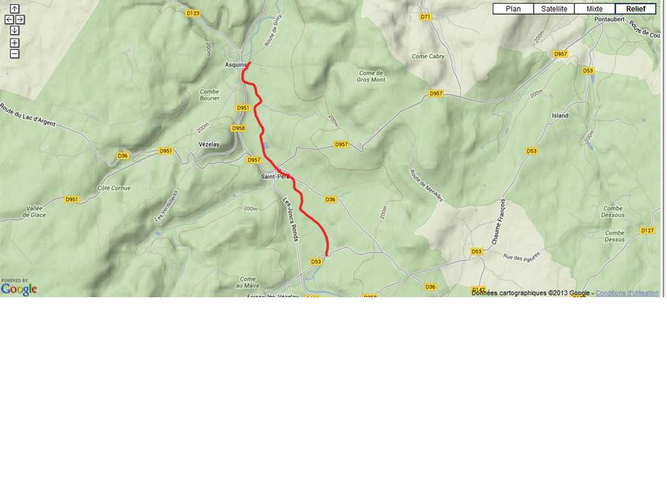 Finalement, on abandonne et on redescend sur la route, on traverse de nouveau la rivière pour ne pas changer et retour au parc VTT.