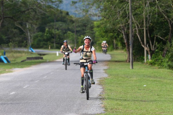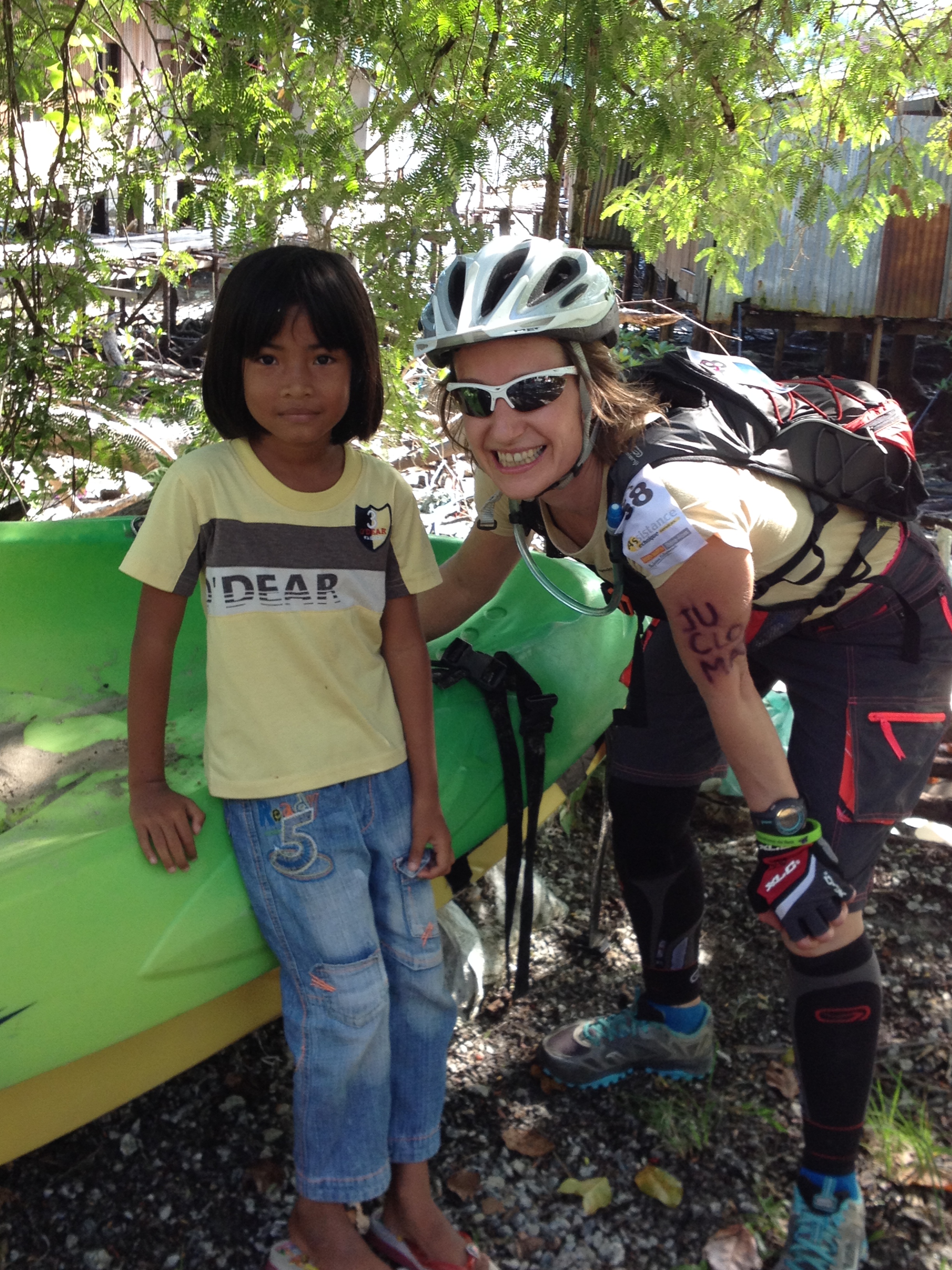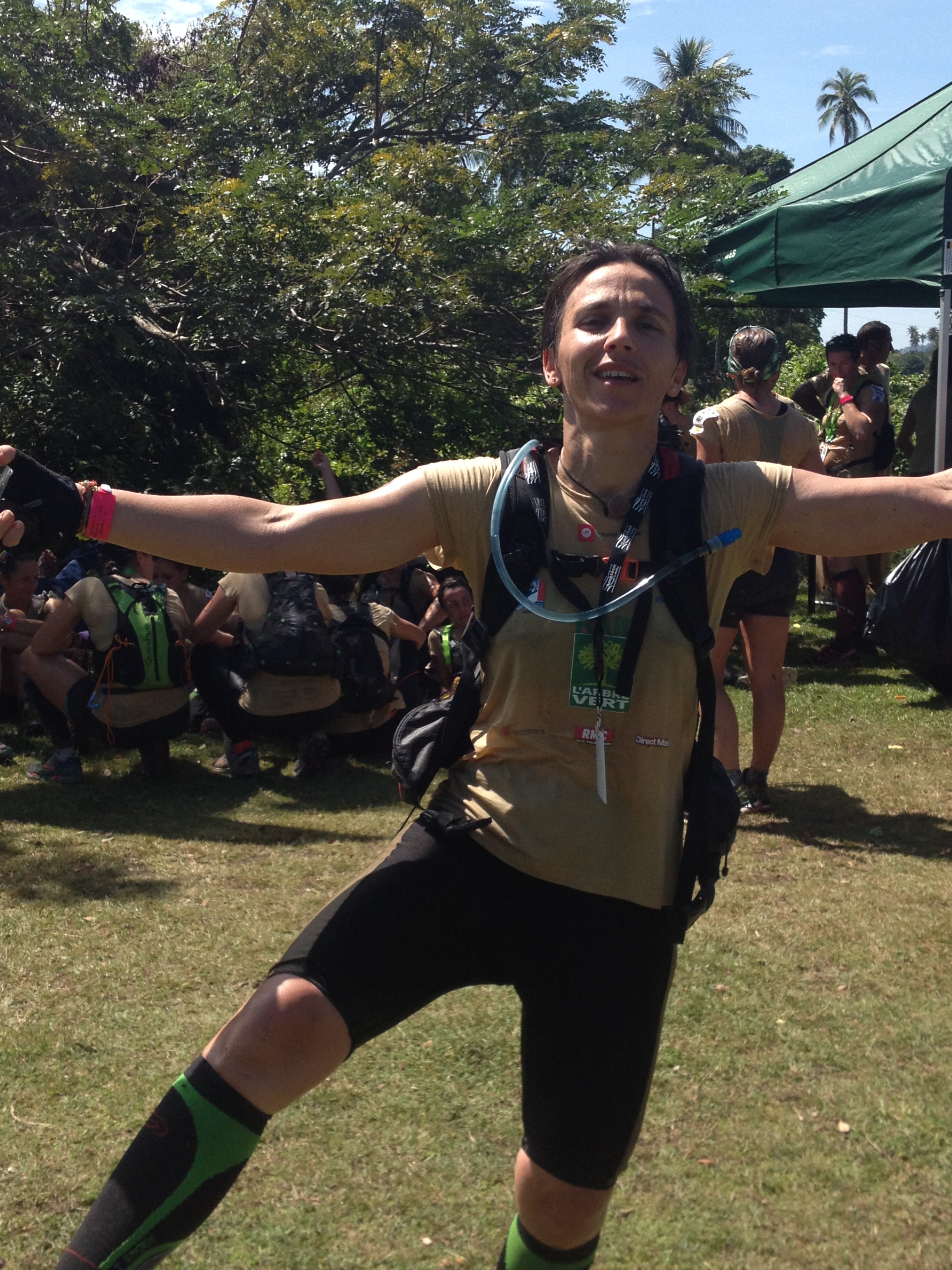 Sylvie : cette épreuve qui nous emmène sur un paysage plus que magnifique et magique aura été peut être la plus dure physiquement car en plus de l enchaînement, le soleil était enfin présent et la chaleur éprouvante . La route … Ce n est pas mon truc ni pour le VTT ni pour la course à pied mais il était important aujourd'hui de montrer comment il est possible de se dépasser ! De cette journée que de souvenirs … je retiens les deux buffles, la plage de l épreuve avec le canoë et cette partie de jungle … Car ce n était plus de la course mais bien un parcours pour « sanglier » oū je retrouve les meilleures des sensations !