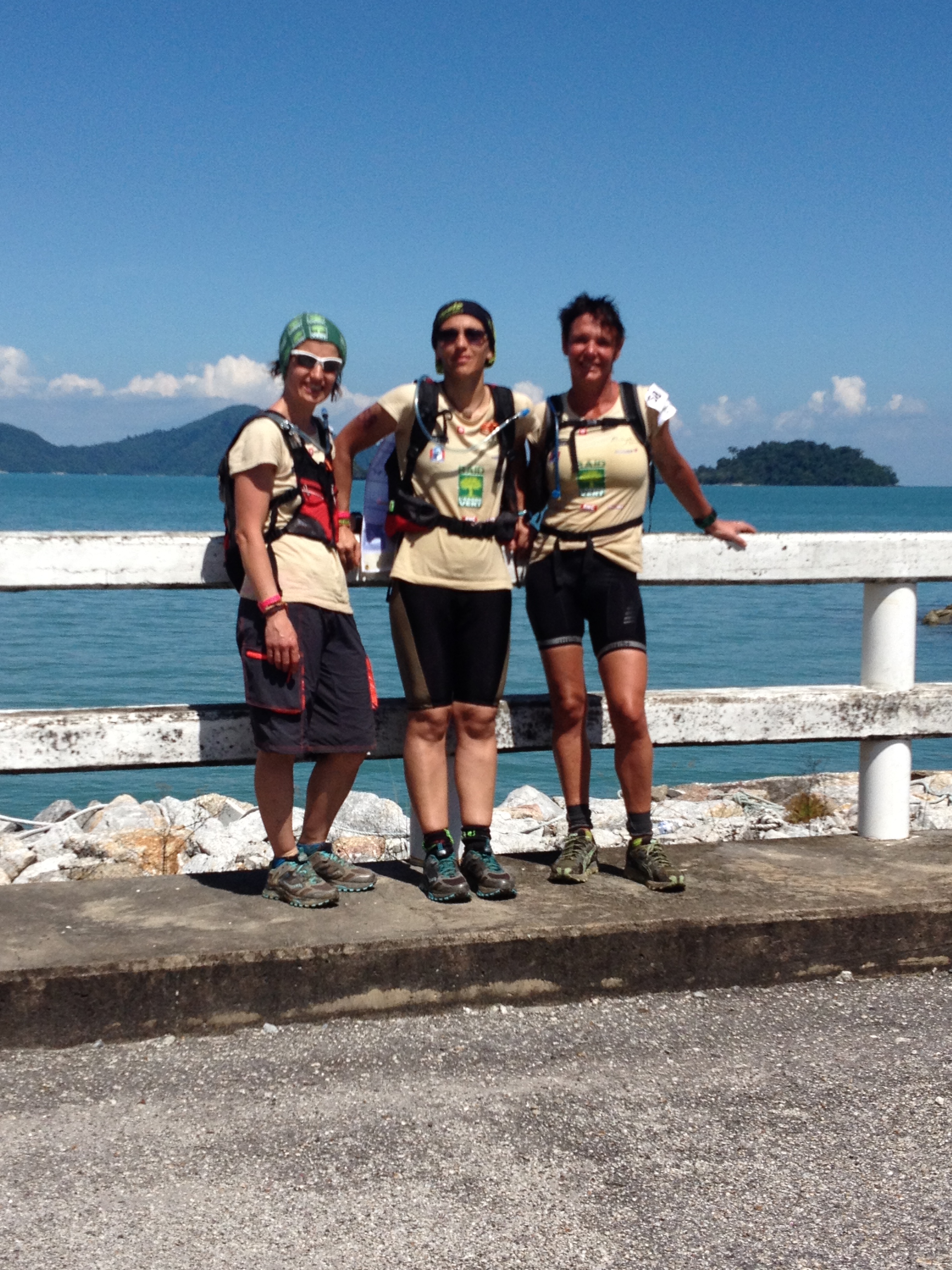 Sortie de la jungle, on retrouve un très beau sentier goudronné longeant une plage, il nous reste 3km de course. Sylvie parvient à reprendre son rythme, Cecile souffre mais tient le choc au mental et s'accroche à son moteur. On tiendra ainsi jusqu'au bout et on franchira la ligne d'arrivée fourbues mais fières: on a tenu et on sait qu'on a fait une perf ! Cécile a été au bout de ses limites !!!!!