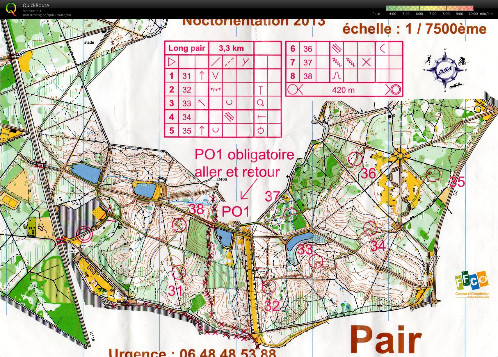 Départ à toute allure pour moi je fonce chercher les cartes. Le troupeau s’est trompé au début et tourne à droite alors que c’est à gauche du coup je me retrouve pendant quelques minutes tout devant (me suis vite fais rattraper par LA HORDE !). On assure bien sur cette carte et on arrive 1er du circuit pair (les équipes devait étaient éclatés au départs suivant leur dossard). Notre dossard étant le 208 on commence par la carte PAIR.
