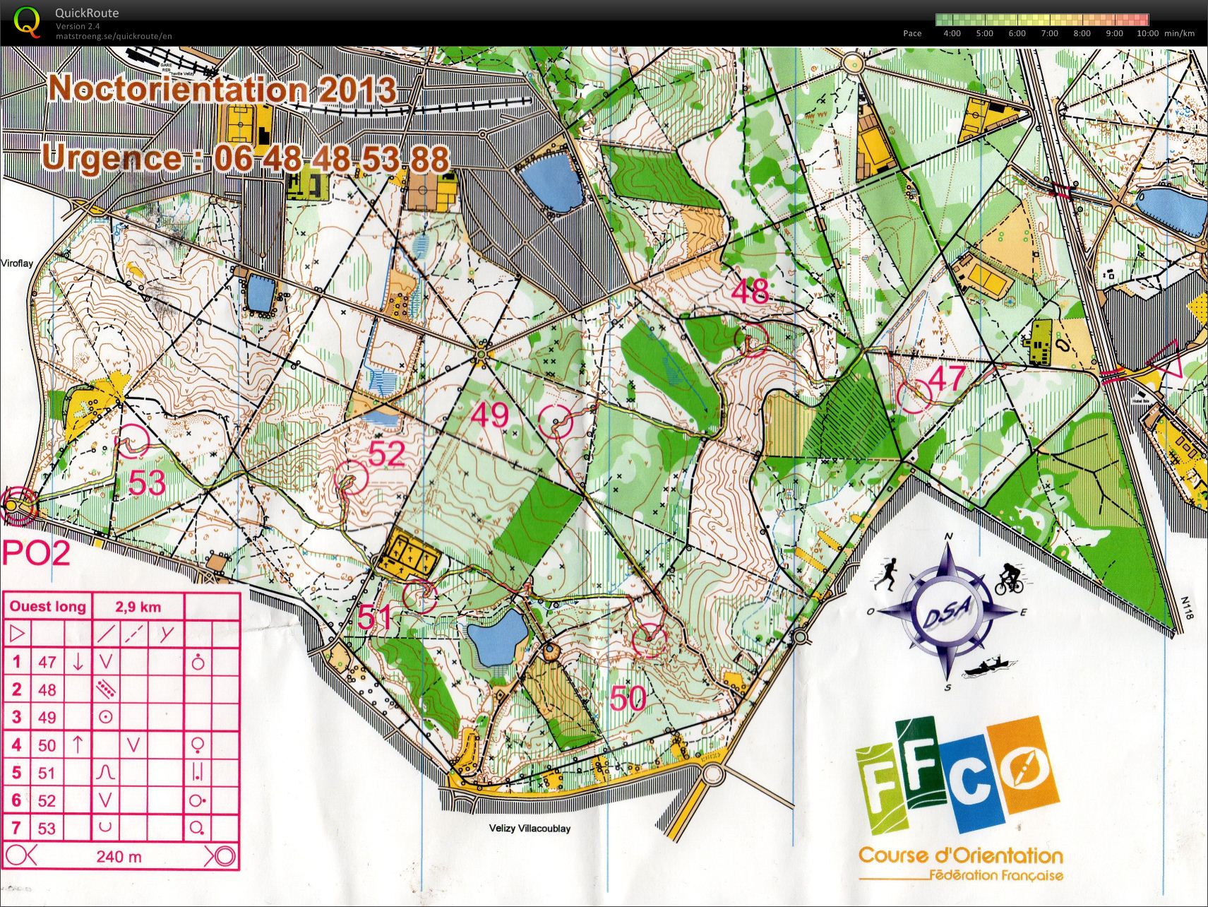 Carte de la cour roland, le terrain est compétemment coupé par l’onf la progression entre parcelle est très délicate !On avance bien mais on cherche un peu la 65 et la 69. On voit beaucoup d’équipes du court qui ont bien plus la pêche que nous.