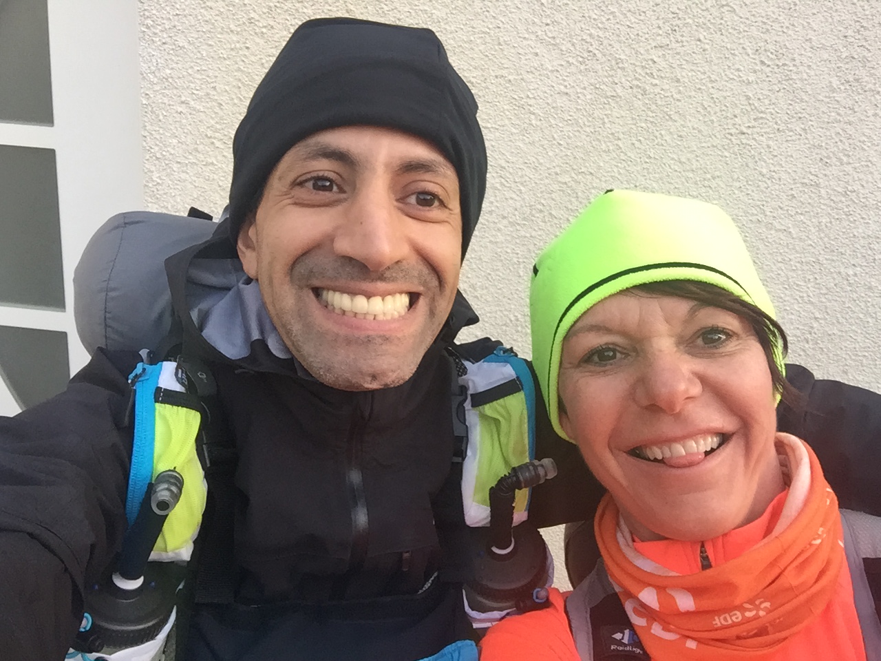 Tout d’abord, une very bad news: Virginie déclare forfait, ne se sentant absolument pas prête pour une telle épreuve. Sa reprise des entraînements en novembre, après 8 mois d’arrêt suite à une rupture et opération des ligaments croisés, ne s’est effectivement pas aussi bien passée que prévue puisqu’elle a enchaîné une petite tendinite du TFL et surtout une très grosse contracture au mollet, la contraignant de nouveau au repos. Nous avons bien sûr essayé, avec Véro, de la convaincre de vivre quand même cette aventure avec nous, convaincues que sa condition physique, même amoindrie lui permettrait d’aller au bout mais sa décision lui appartient… Nous sommes tristes car ce projet est né entre nous trois mais ce sont les aléas du sport.