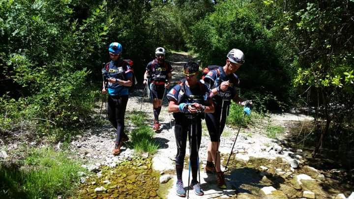 Il y a du monde à cette transition et nous apprenons que la porte horaire est décalée de 4h. C’est peut-être jouable mais il ne faut pas trainer. Nous décidons de tenter le coup et de ne pas prendre de repos cette nuit. Trek de 40km, porte horaire 4h du matin à CP21. Le début est bon mais très vite nous devons suivre une crête avec un soi-disant chemin qui n’est plus très pratiqué. Nous progressons lentement à travers buis et autres arbustes épineux au détriment de nos jambes et bras qui se font copieusement arracher des bouts de peau. Nous atteignons cette foutue balise mais que de temps perdu! La nuit tombe, cela ne va pas arranger les choses.