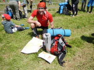 Il est midi ce samedi 26 quand nous pénétrons dans la zone « sas » de départ où se pressent les 2000 concurrents, il nous reste 1/2h d’attente sous le soleil avant de charger nos sacs à dos et de se lancer pour ces 2 jours de chasse à la balise. L’ambiance est euphorique…puis c’est le départ!!! Petite course balisée pour rejoindre la zone de distribution des circuits, dans un champ…l’aventure commence vraiment!!!!