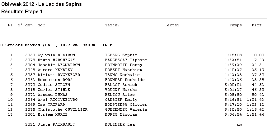 Et voici les résultats de la première journée: